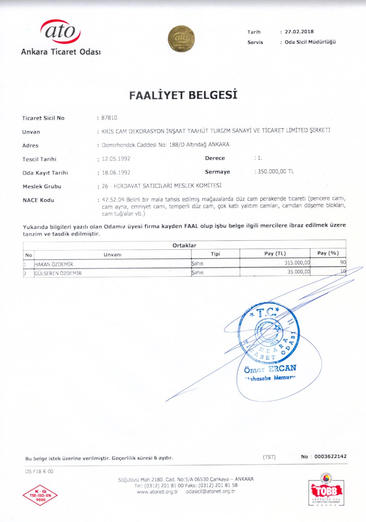 Sanayi Sicil Belgesi