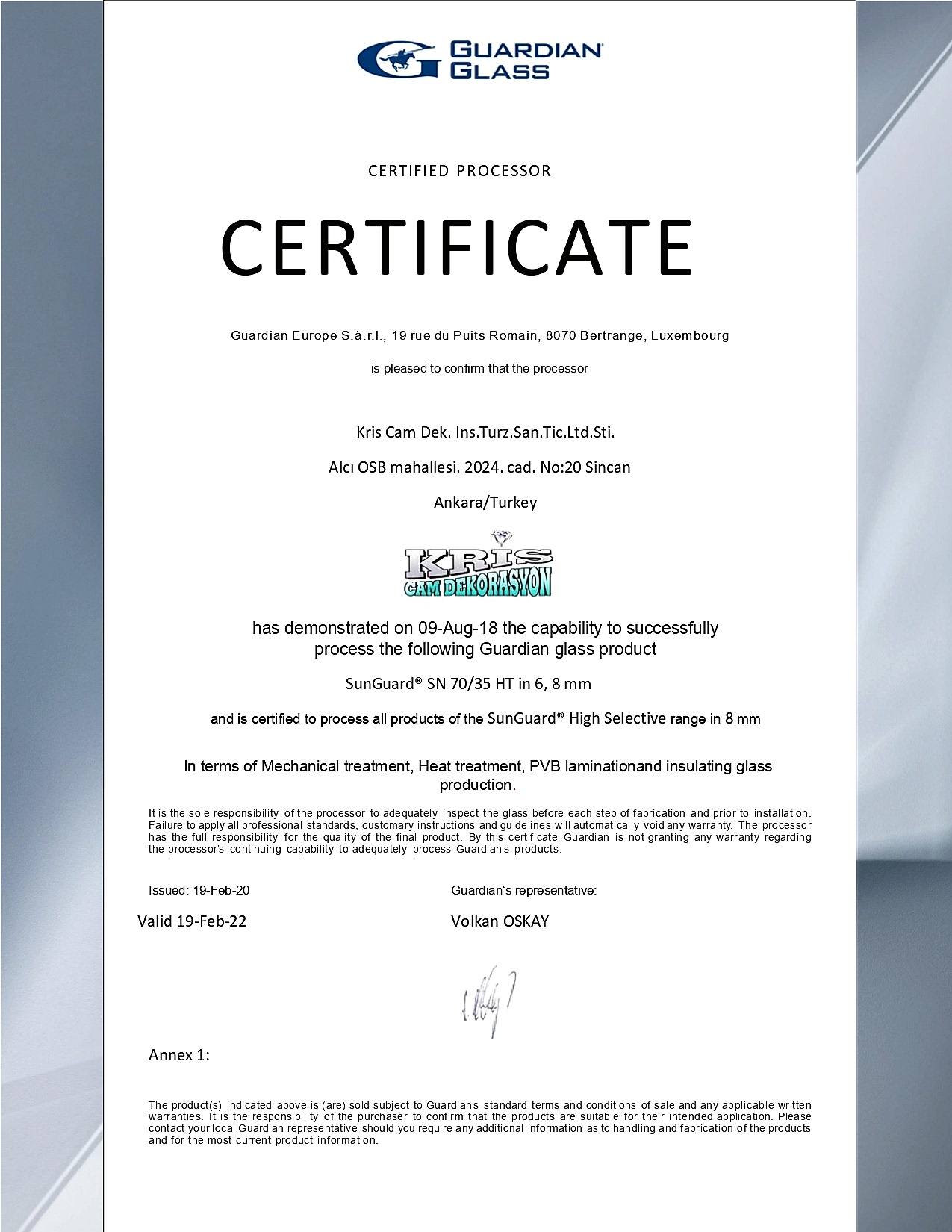Guardian Glass - Akreditasyon Belgesi