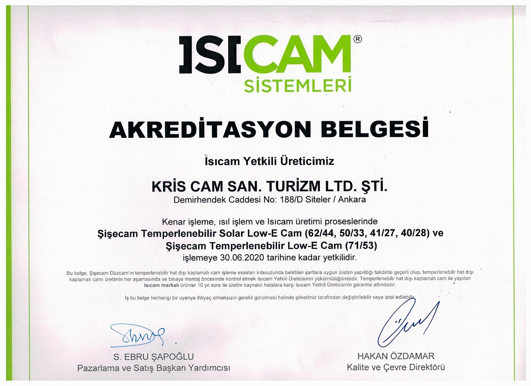 Isıcam Sistemleri Akreditasyon Belgesi