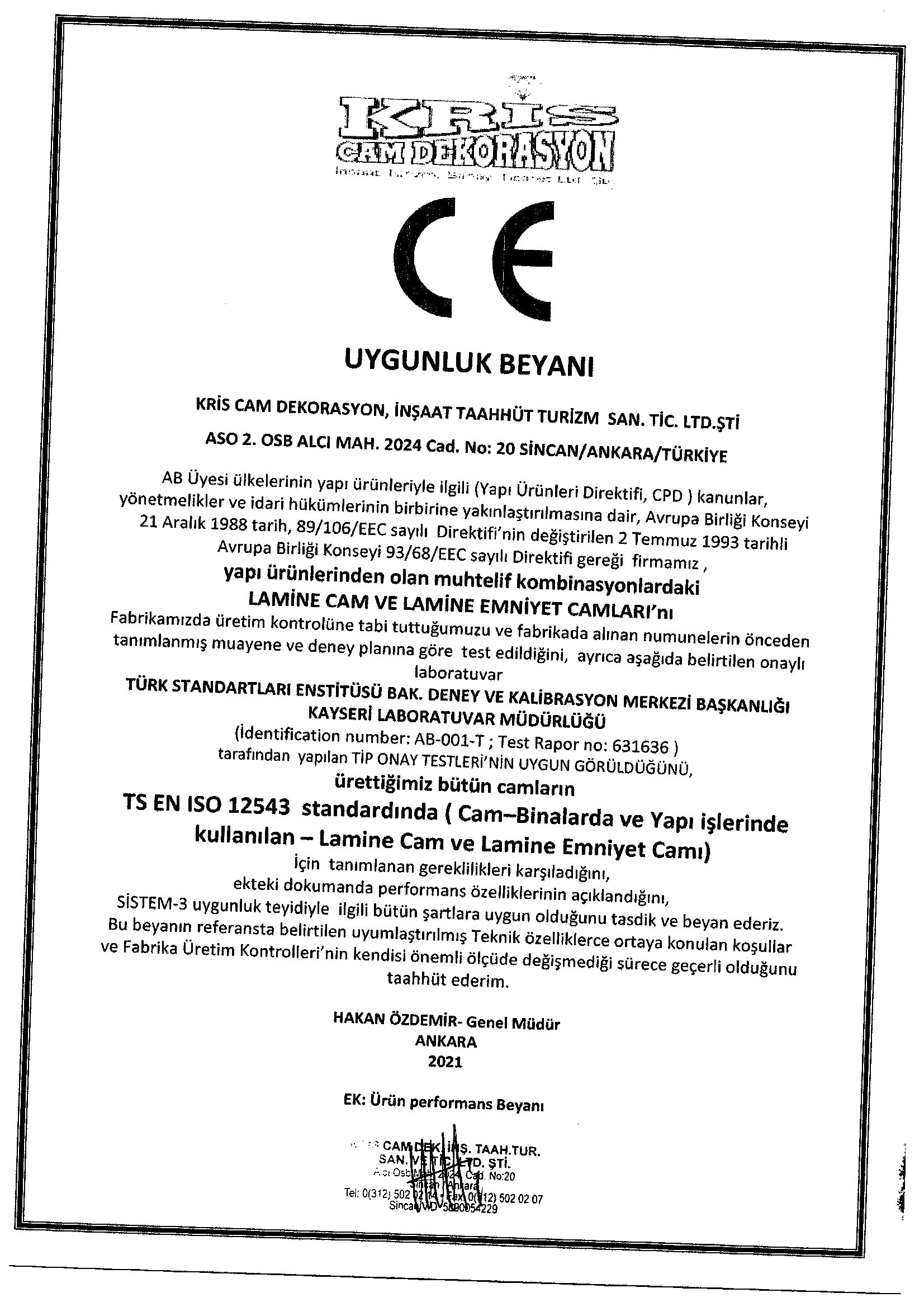 Lamine Cam AT Uygunluk Beyanı