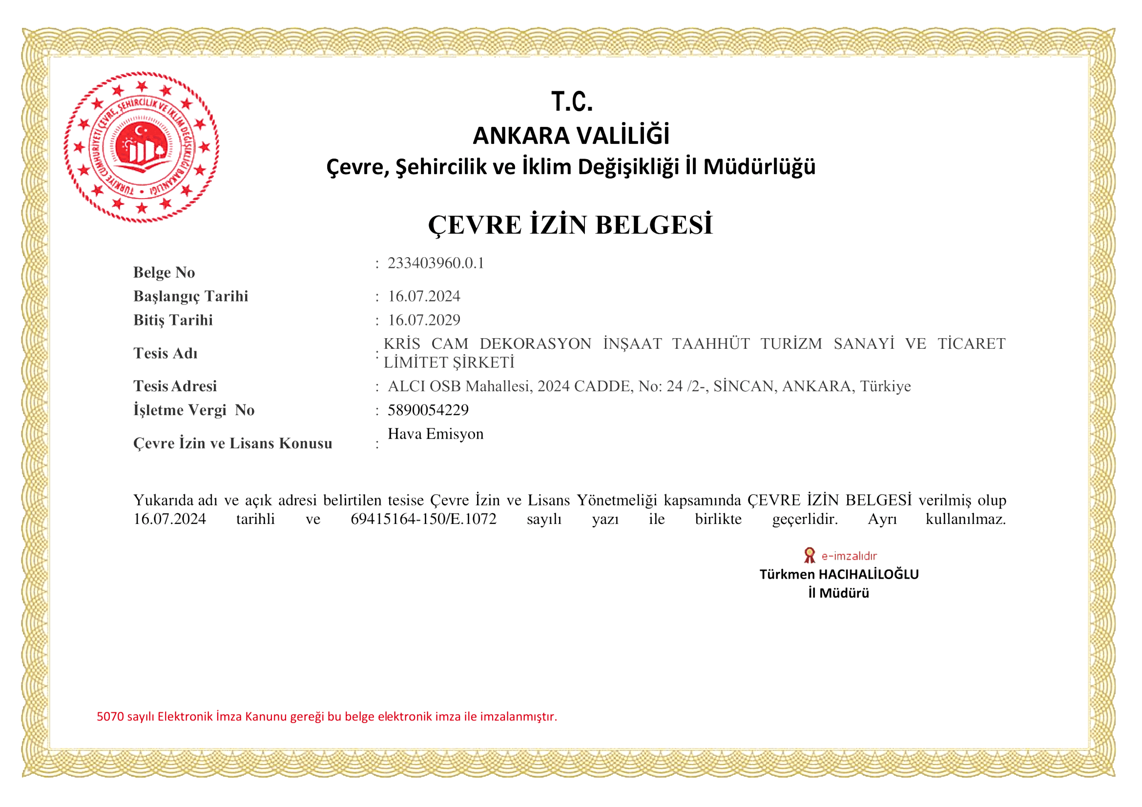 Çevre İzin Belgesi